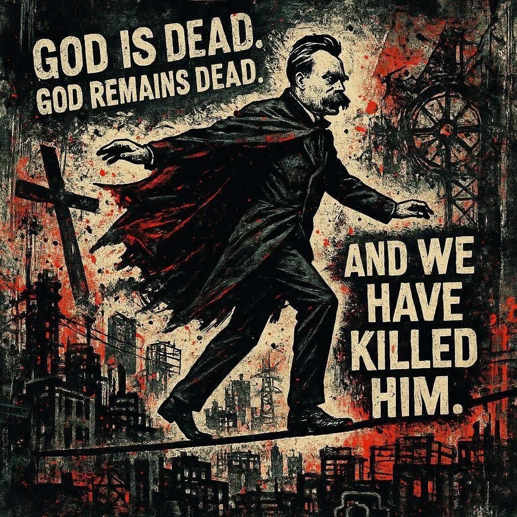 Nietzsche’s declaration “God is dead. God remains dead. And we have killed him,” is a metaphorical statement about the cultural and philosophical shift in Western society rather than a literal assertion of God’s death. It reflects the collapse of traditional divine and moral influences, particularly those grounded in Christianity, which once provided absolute, universal truths and meaning to life. Nietzsche observed that the Enlightenment movement, scientific rationalism, and secularization had eroded the belief in a transcendent God, leaving a void where the ultimate source of values and purpose used to be.