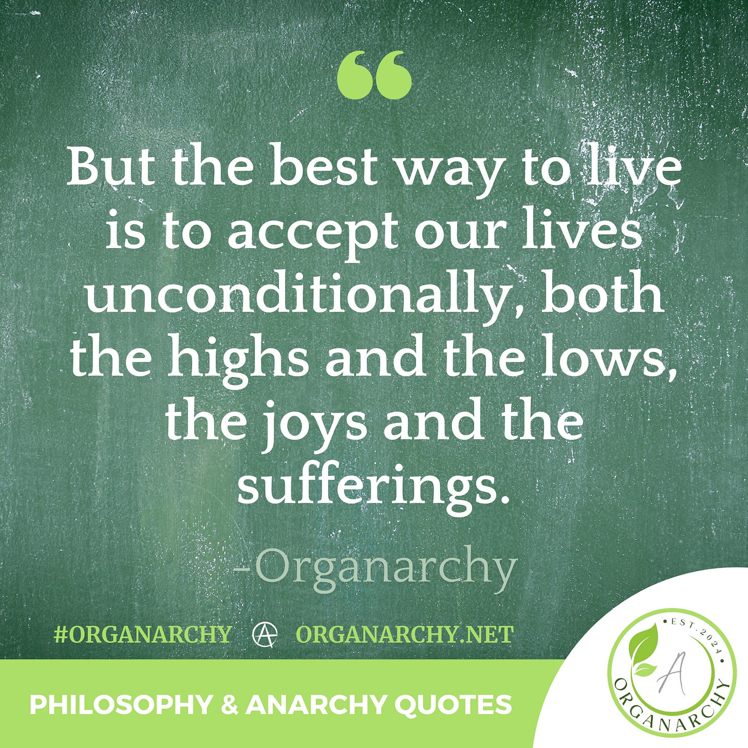 But the best way to live is to accept our lives unconditionally, both the highs and the lows, the joys and the sufferings. When you learn to love your fate, you can with great enthusiasm look forward to all of life!